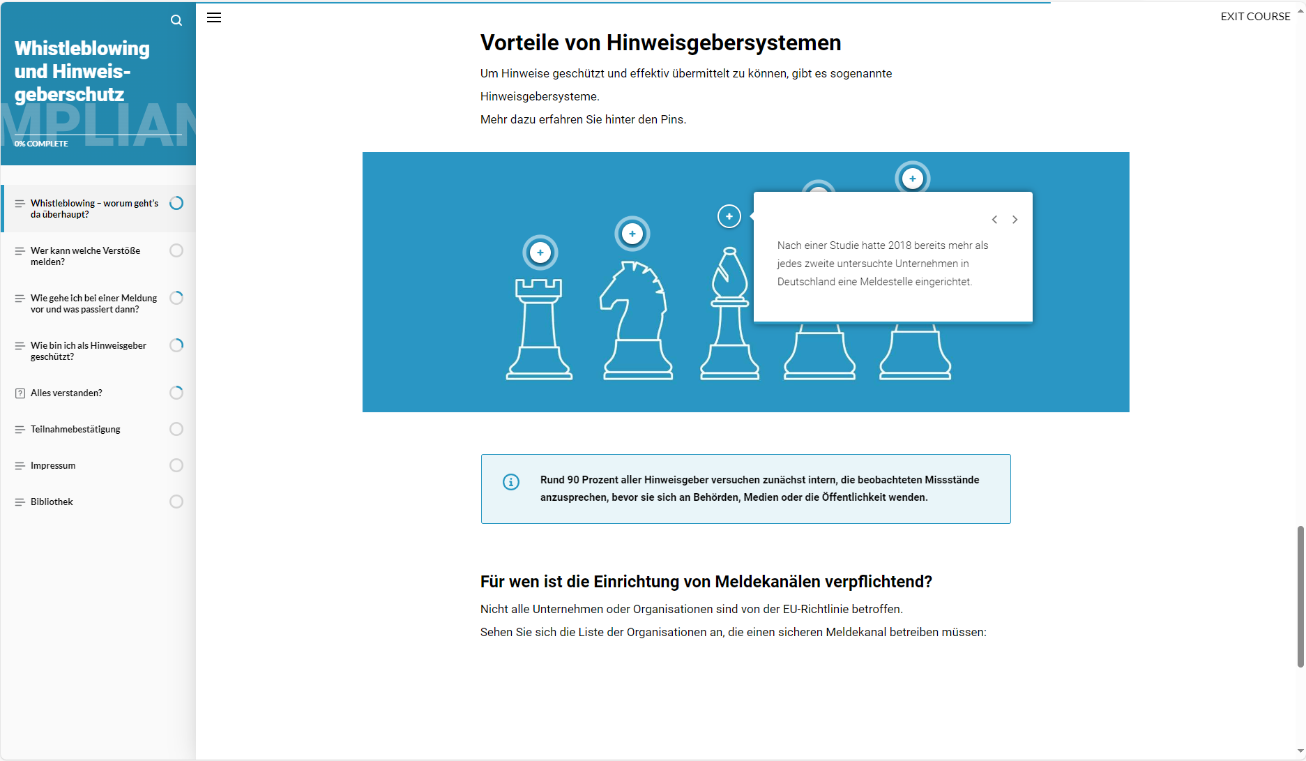 - Kurze und unterhaltsame Lerneinheiten (Learnnuggets) garantieren die volle Aufmerksamkeit.