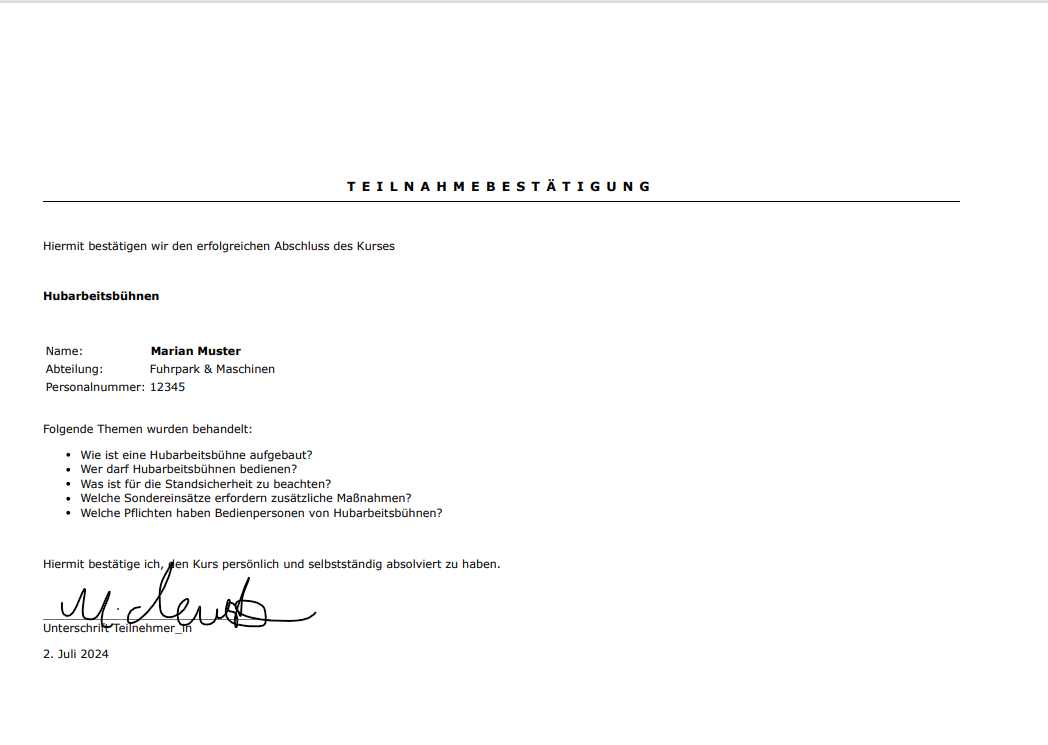 - Geringer Organisationsaufwand bei Unterweisungen.